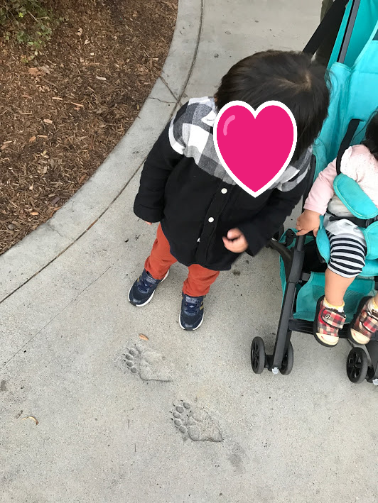 お店の外にも遊び心。なんの足跡???