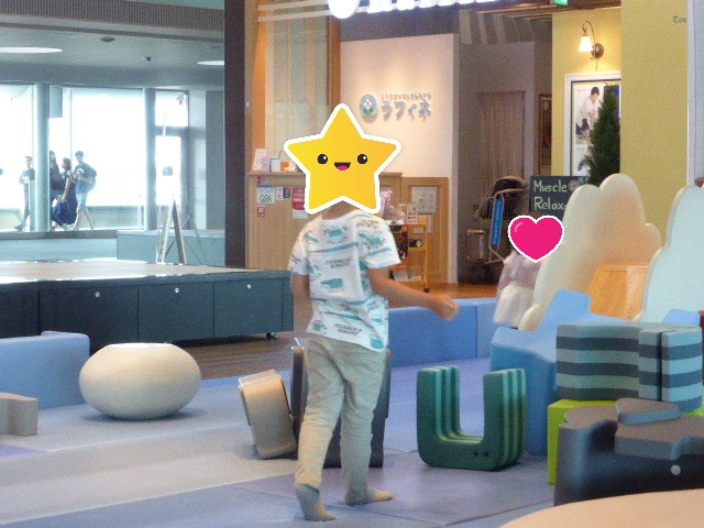 静かにしてくれるか心配だったので、空港のキッズスペースで遊ばせて