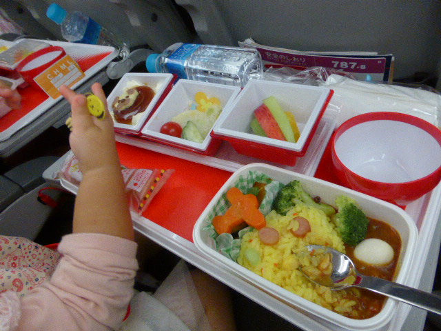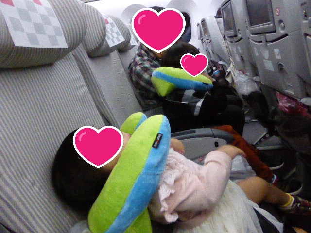 子供たちは飛行機 10時間の長距離が初めて。
