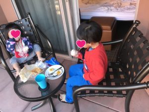 猫の額ほどのバルコニーで朝食を。