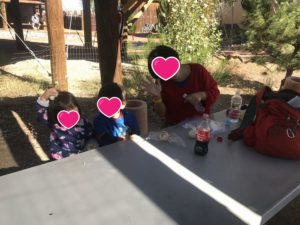 子供たちは屋外でいただくお食事に