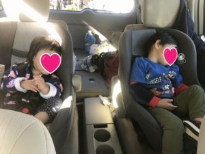 帰りの車中、子供たちは熟睡です。