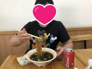 食事中のお兄さんにメニューを見せて、翻訳アプリで