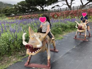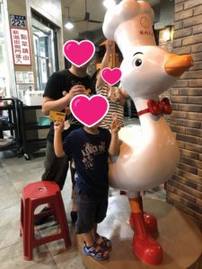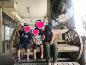 しかもお店の前のマスコット、乗ってもいいとのこと。
