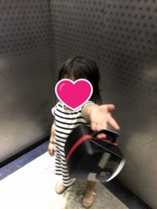 妻が町歩きの装備を外して振り返ると、