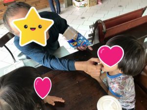 子供たちにバナナをくれたり、お菓子をくれたり、