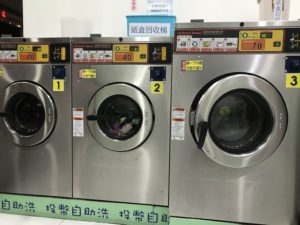 夫がたまった洗濯物をコインランドリーに