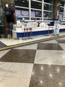 ポケットWiFiを人気のない1階出発ロビーにあるカウンターに返しに行きます。