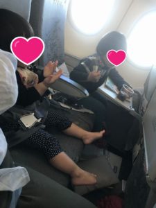 心配をよそに、席に座ってさっさと靴を脱いでくつろぐ二人。