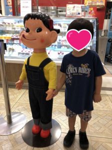隣の不二家さんのペコちゃんと写真を撮ったりと過ごします。