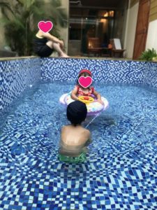 戻ってお部屋のプールで水遊びです。