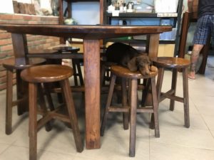 隣のテーブルに犬を発見!