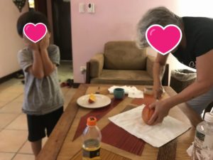 母が支えながら食べることにしましょう。