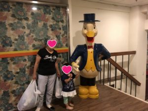 途中、アヒルのマスコットを見つけた娘。