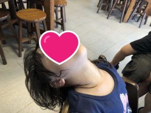 椅子に座らせても起きやしません。