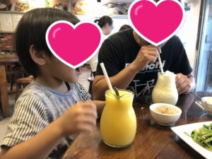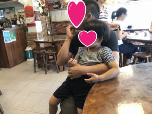 息子のお口に合ったようで両手を頬に当て「美味しい!」のポーズ。