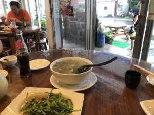 中国語が飛び交い、リラックスした雰囲気の中でいただきます。