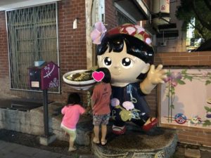 お店を出るとマスコットの置物と